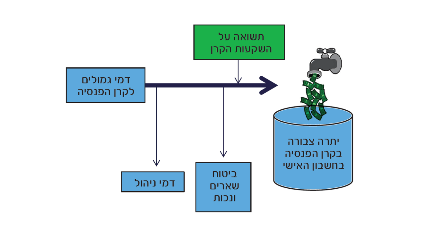 מהפקדה החודשית מנכים דמי ניהול ודמי ביטוח עבור שארים ונכות, והיתרה נצברת בחשבונו